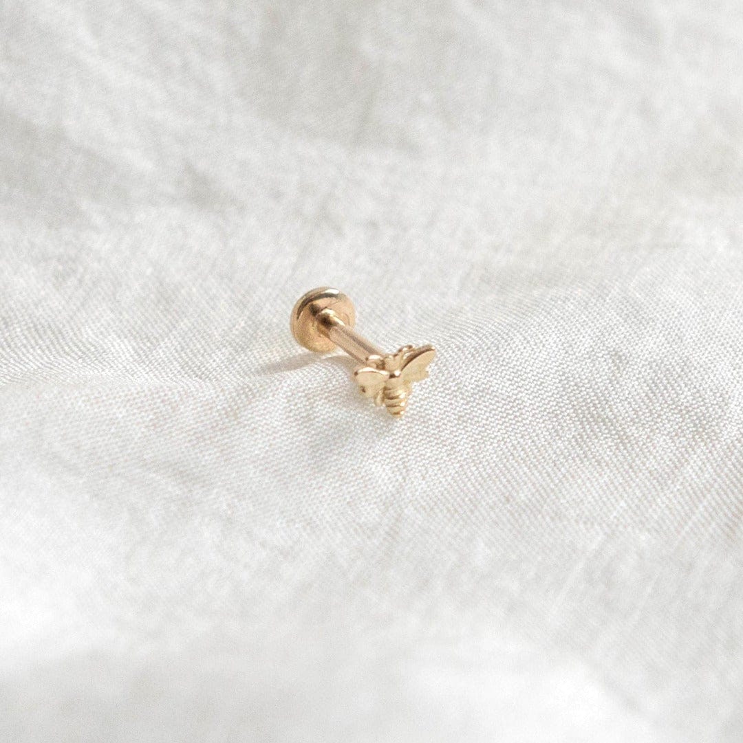 Curate your perfect ear with the addition of the 14K Solid Gold Bee Labret Piercing with incredibly fine detailing, perfect for the tragus, helix or upper lobe piercing.