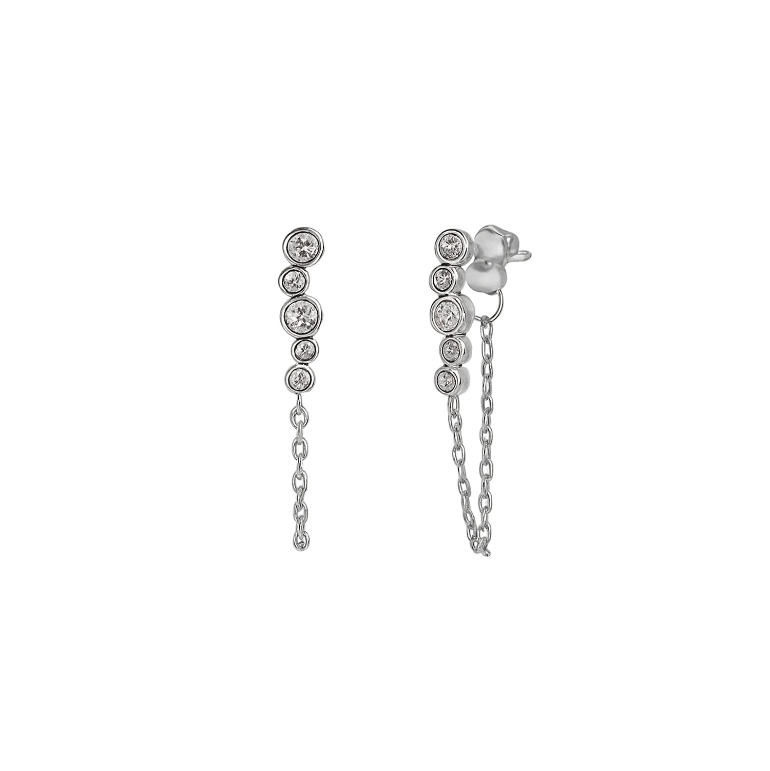 Curate your perfect ear with the addition of the Crystal Cascade Chain Stud Earrings, a beautifully delicate stacking stud with bezel set crystal and chain connector.