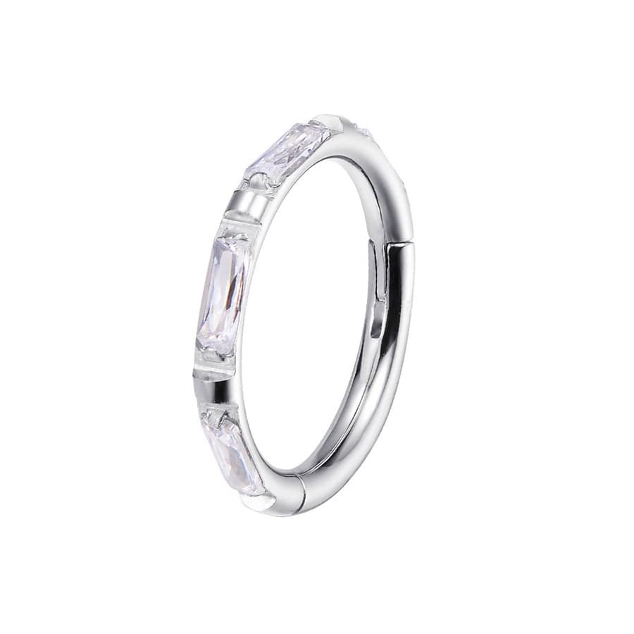 Curate your perfect ear with the addition of the eternity clicker hoop, a classic circular hoop with cubic zirconia perfect for the rook, forward helix, helix or conch.