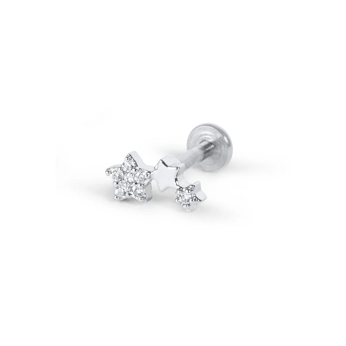 Curate your perfect ear with the addition of the Star Trio Tragus, a tiny star trio with clear gems.