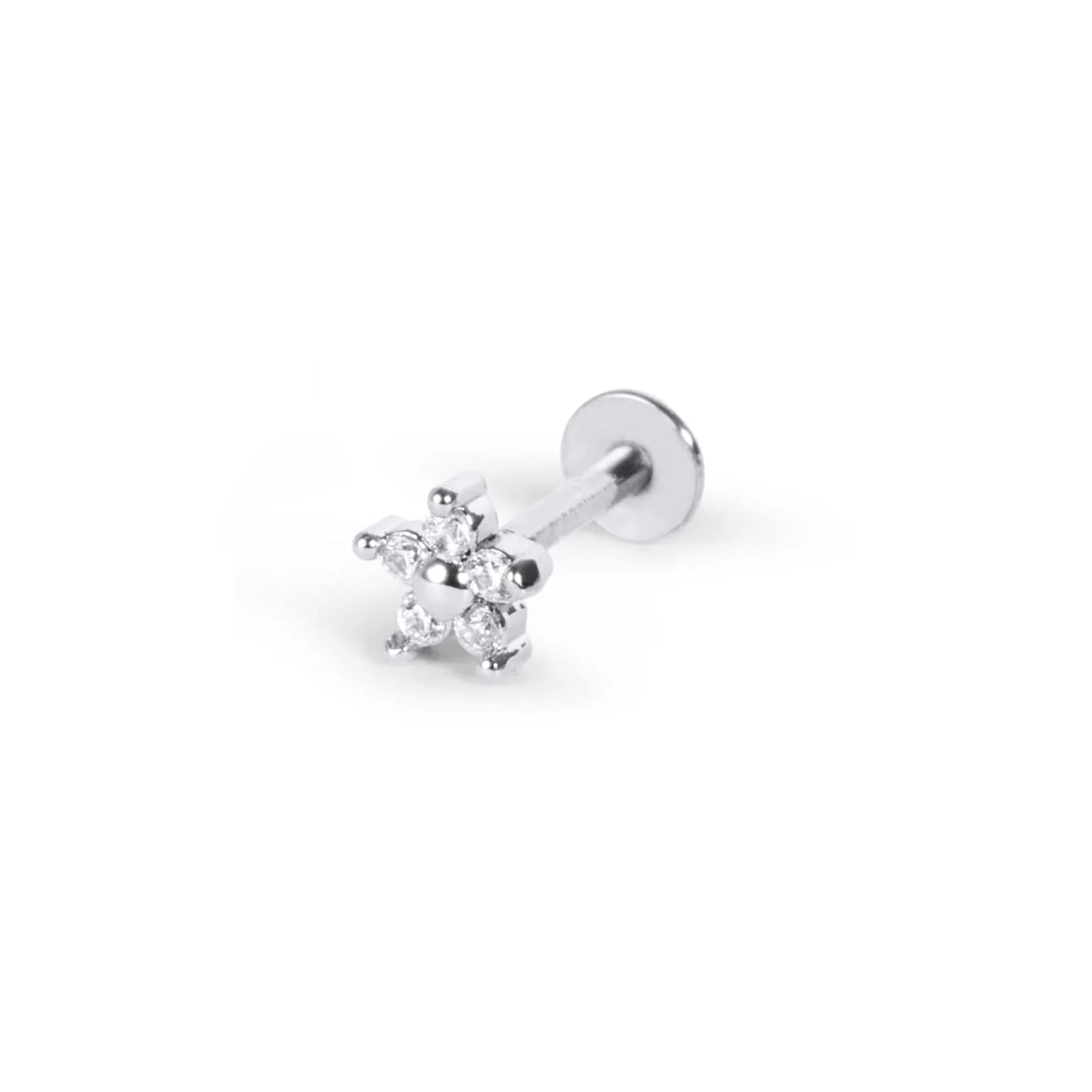 Curate your perfect ear with the addition of the Tiny Flower Tragus, a tiny flower with clear gems.