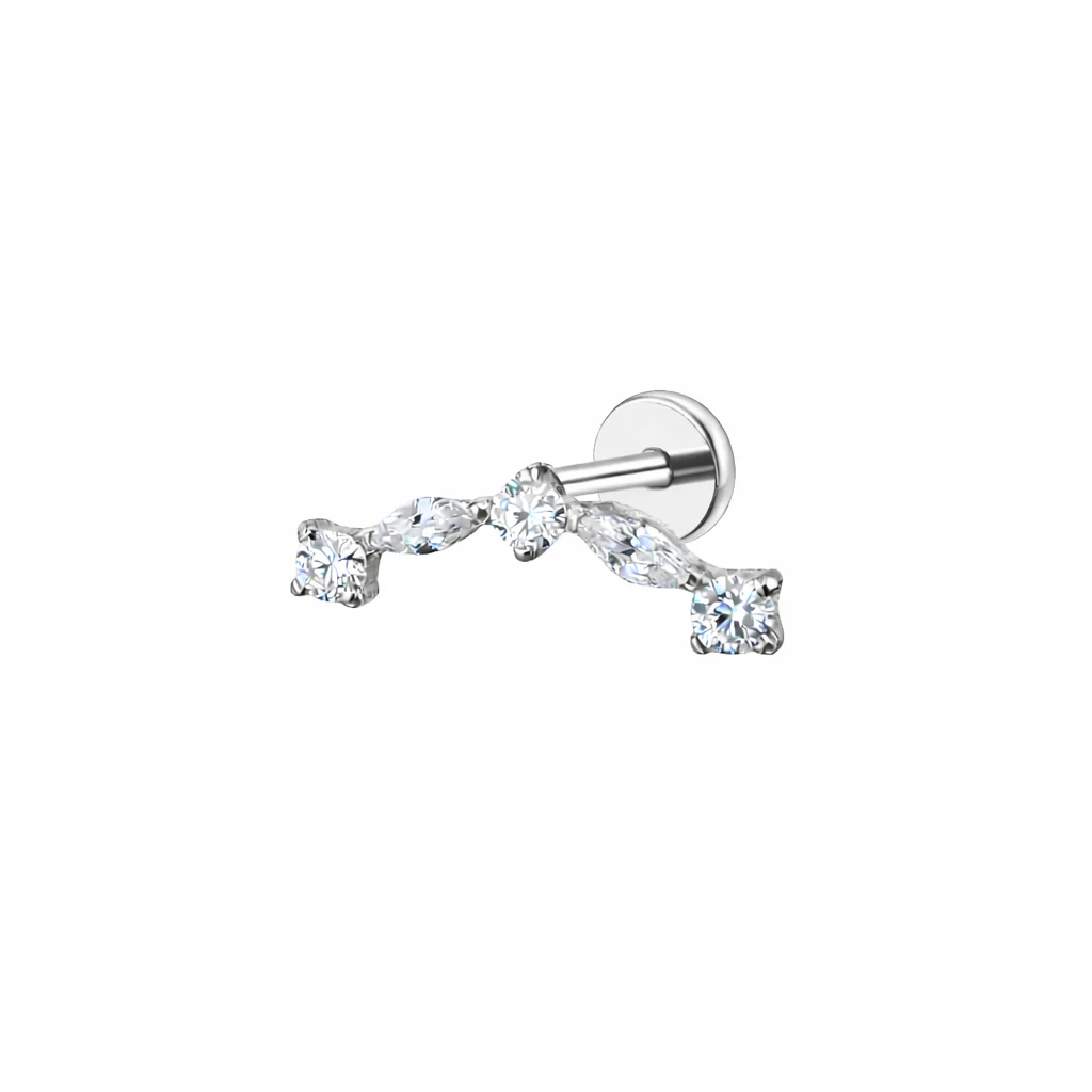 Curate your perfect ear with the addition of the Titanium Internally threaded Venus Curve Crystal Piercing with 5 shaped crystals